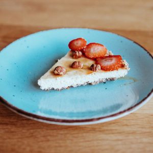 Standardně je náplň cheesecaku z mascarpone a philadelphie. My jsme nahradili mascarpone měkkým tvarohem. Jako sladidlo jsme zvolili čekankový sirup, ale můžete použít i sirup javorový.