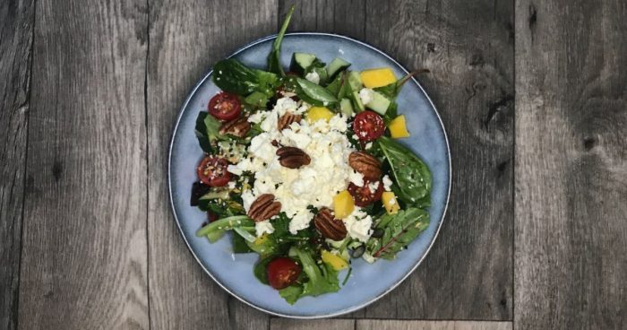 Klasický mangový salát s koriandrem pochází z jihovýchodní Asie, především z Thajska a Vietnamu, kde se často podává jako lehký oběd nebo příloha k masu. Základem těchto salátů je zralé mango doplněné o čerstvé bylinky, limetkovou šťávu a arašídy. My jsme si připravili vlastní verzi, která je obohacená o balkánský sýr, který dodává pokrmu hutnější texturu a zajímavý kontrast chutí. K tomu jsme přidali lehkou směs salátu a arašídy jsme vyměnili za pekany, které mají medový nádech.