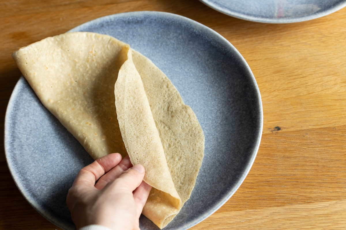 • Nalijete těsto na pánev a pečete z obou stran, dokud tortilla nezíská zlatavou barvu.