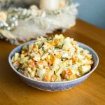 Každý má svůj vlastní recept na bramborový salát. My už několikátý rok děláme kromě klasického i tento z dýně a kešu majonézy, který se poslední roky stává čím dál oblíbenější a mizí i rychleji než ten klasický. Je vhodnou alternativou pro všechny, kterým je z klasického bramborového salátu špatně nebo chtějí nějakou zdravější alternativu.
